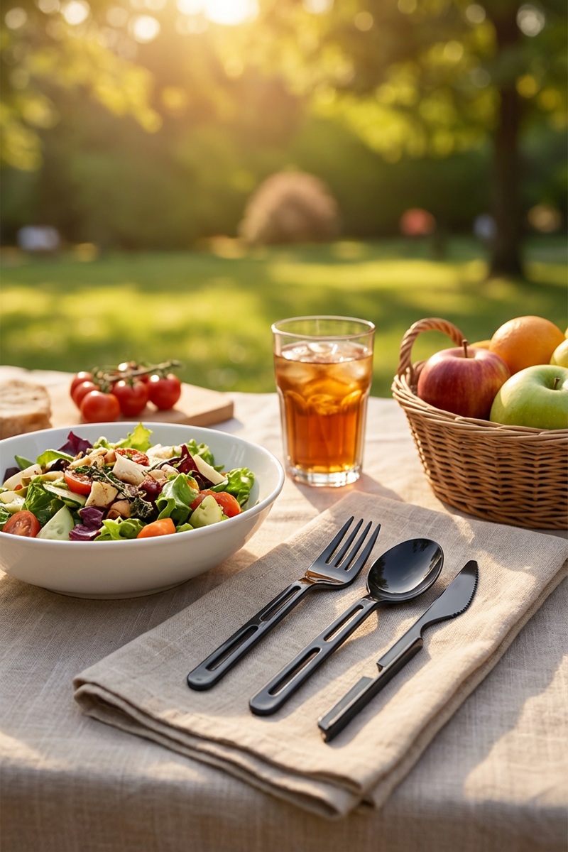 Tableware: Includes spoons, forks, stirrers, plastic plates, and others,